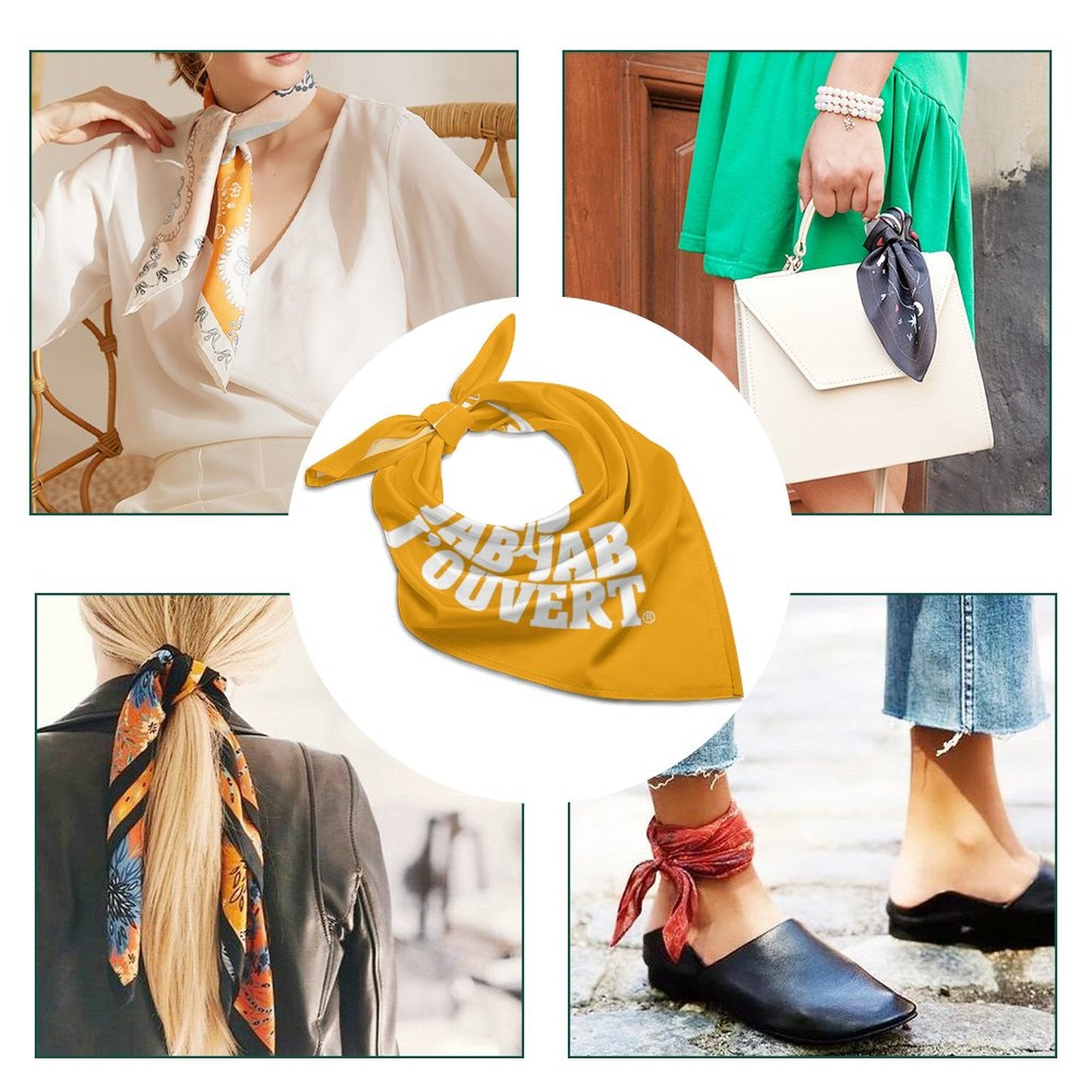 - Product Performance: Silk-like Fabric: The Square Scarf is made of breathable, wrinkle-resistant and skin-friendly imitated silk fabric, better than most satin scarf fabrics on the market. When you touch the Square Scarf, you will feel soft and smooth, just feels like silk material. Versatile: The Square Scarf offers different kinds of dressing ways. It can be used as neckerchief, scarf bracelet, also head and hair band and so on. Also, it can also be a decoration for leather bags, bamboo bags, paper bags, etc.